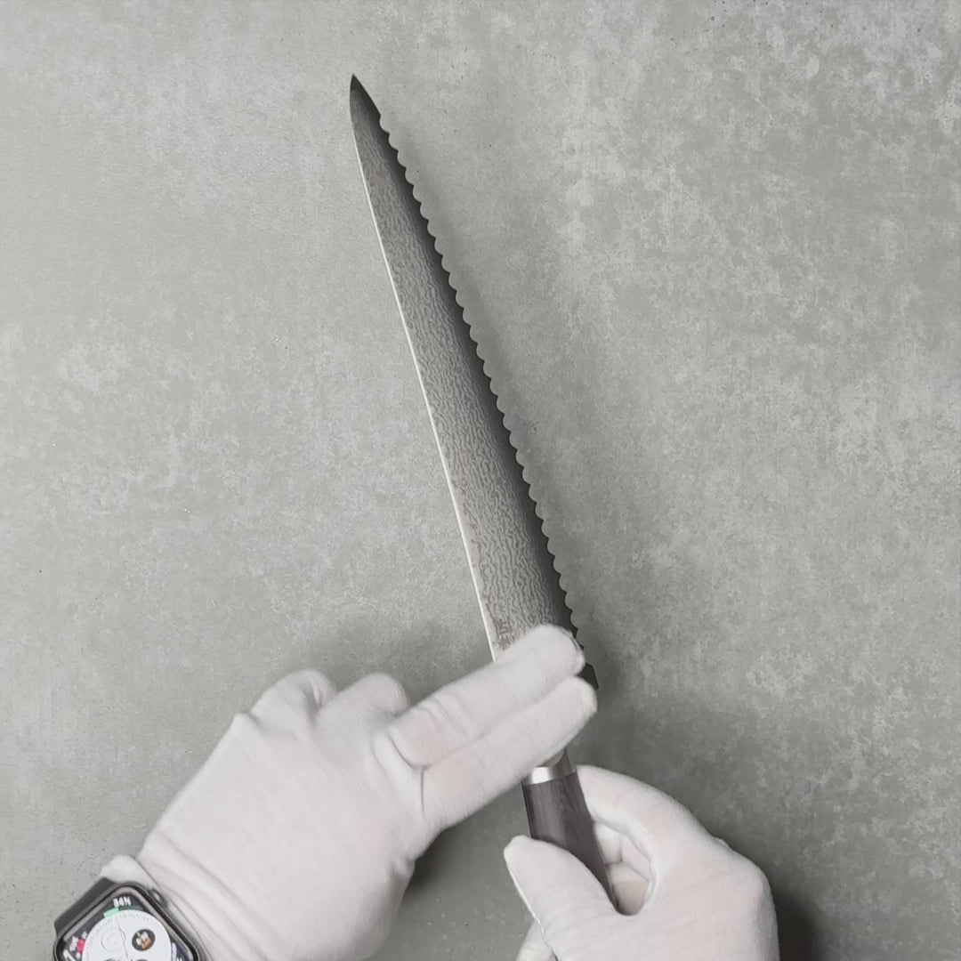 Miyako SUS 240mm Bread Slicer | 33 Layer Damascus Steel Blade – Made in Japan