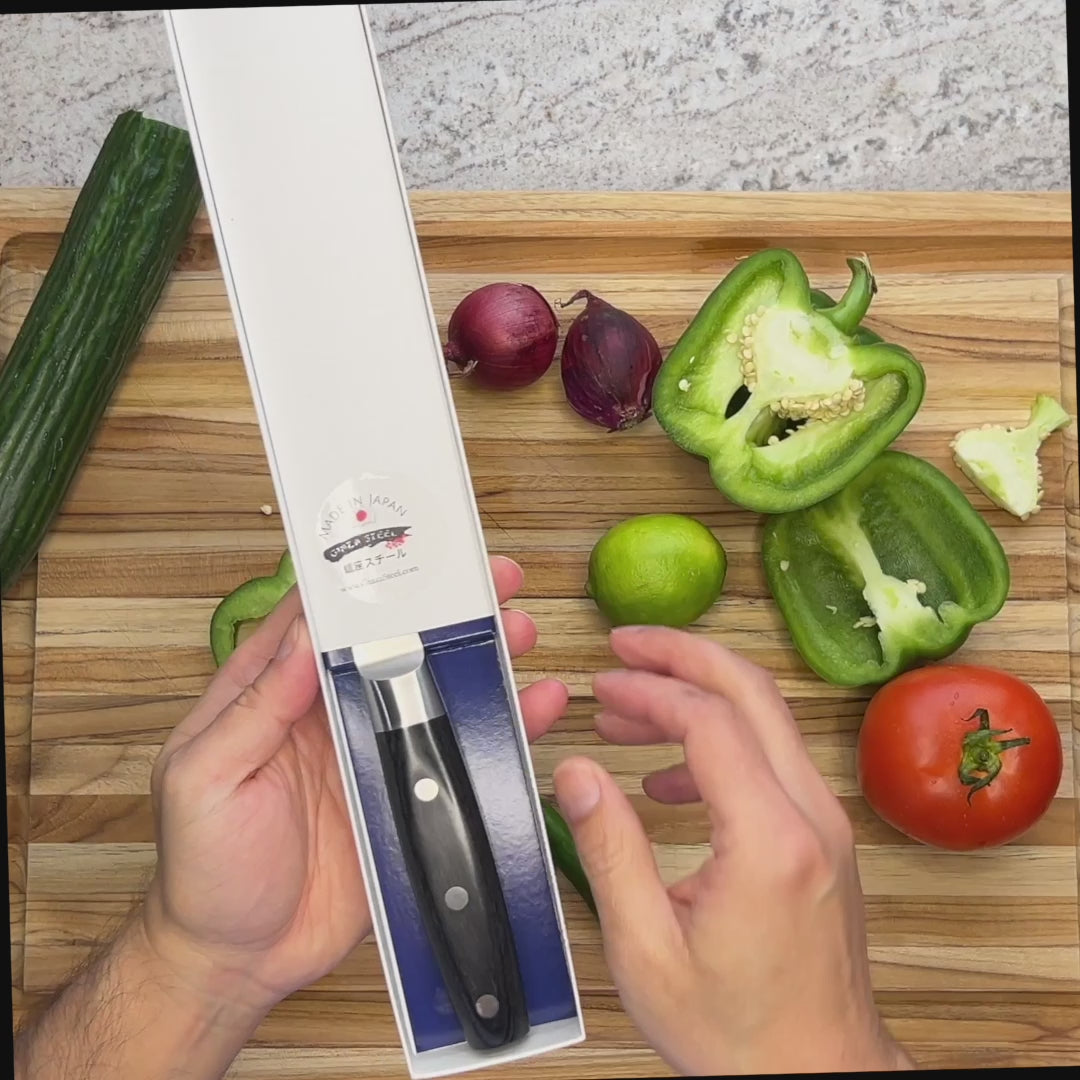 - This is an extremely sharp knife. Please use special care when using and storing it. Please keep out of children's reach.