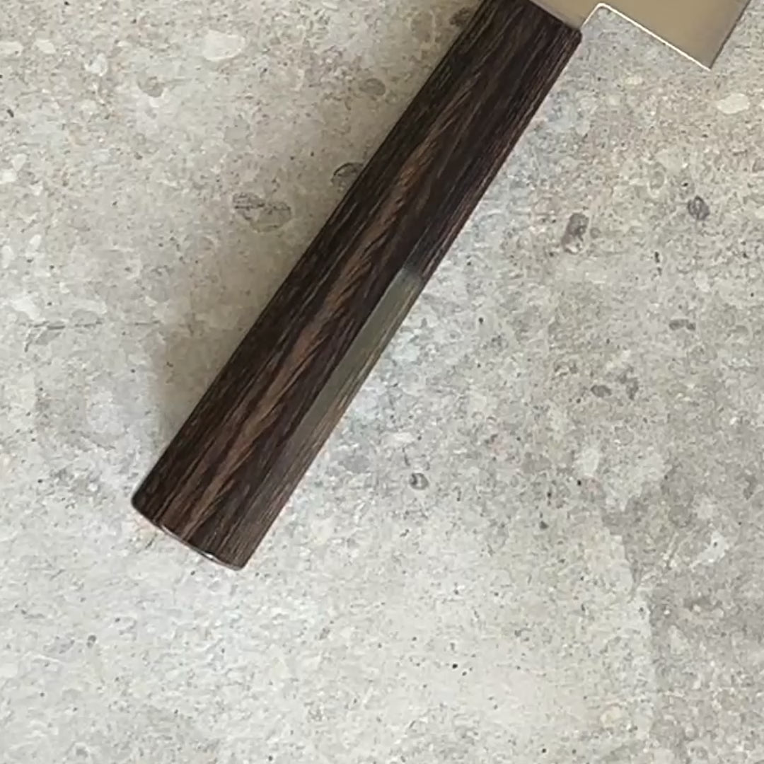 Introducing the "Ichizu Series" Japanese VG10 knife, a simple yet elegant addition to any kitchen. This knife is made with VG10 steel, a high-quality stainless steel known for its exceptional sharpness and durability. The knife's design is straightforward and unassuming, allowing the natural beauty of the steel to shine through